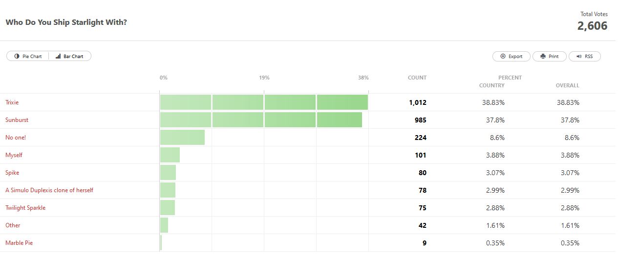 1. Résultats du sondage sur le personnage qui serait le mieux à shipper avec Starlight Glimmer