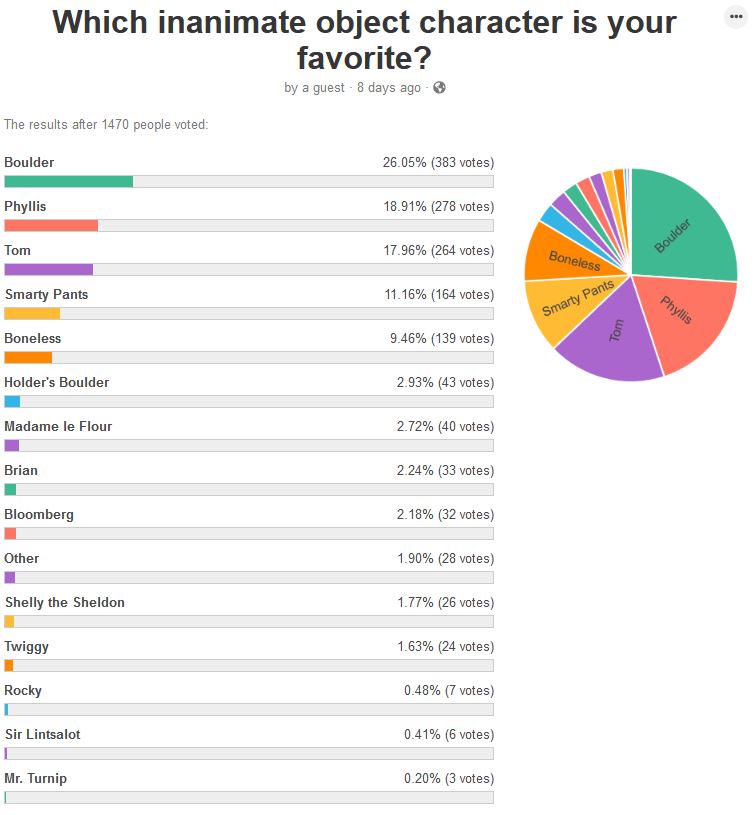 Résultats du sondage sur le meilleur personnage inanimé de la série, Indice: il peut rentrer dans une poche...